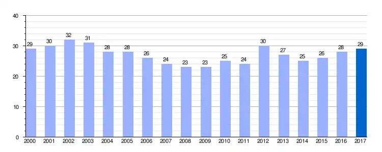 | Gráfica de evolución demográfica de Villanueva-Soportilla entre 2000 y 2017 |