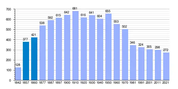 | Gráfica de evolución demográfica de Villanueva de Gumiel[2] entre 1842 y 2021 |
