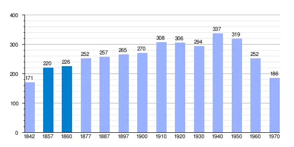 | Gráfica de evolución demográfica de Villanueva de Rio Ubierna[2] entre 1842 y 1970 |