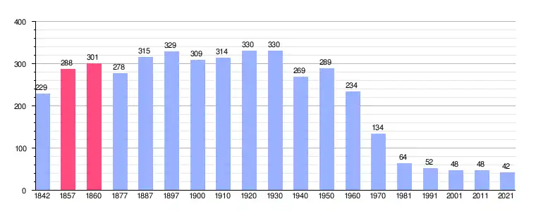 | Gráfica de evolución demográfica de Villanueva del Rebollar de la Sierra[3][4] entre 1842 y 2021 |