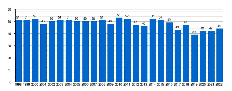 | Gráfica de evolución demográfica de Villanueva del Rebollar de la Sierra[5] entre 1998 y 2022 |