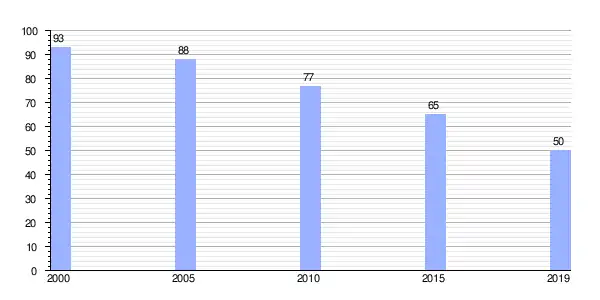 | Gráfica de evolución demográfica de Vilapún (aldea) entre 2000 y 2019 |