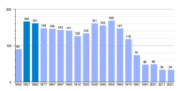 Su población –agrícola con aprovechamientos forestales– ha disminuido a lo largo del último siglo: contaba con 127 habitantes en el año 1900, 163 en 1950, 118 en 1970, 74 en 1981, y 9 en la actualidad.