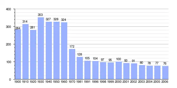 | Gráfica de evolución demográfica de Villarejo de Montalbán entre 1900 y 2006 |