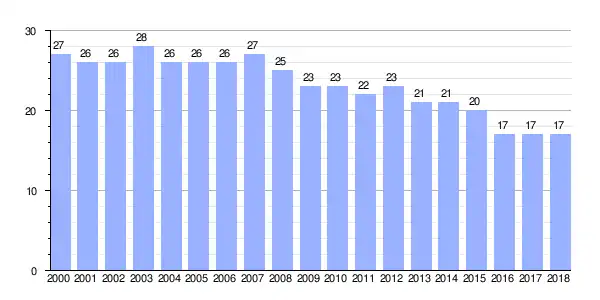 | Gráfica de evolución demográfica de Villarraso (lugar) entre 2000 y 2018 |