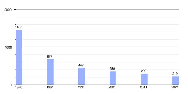 | Gráfica de evolución demográfica de Villas de la Ventosa[2] entre 1970 y 2021 |