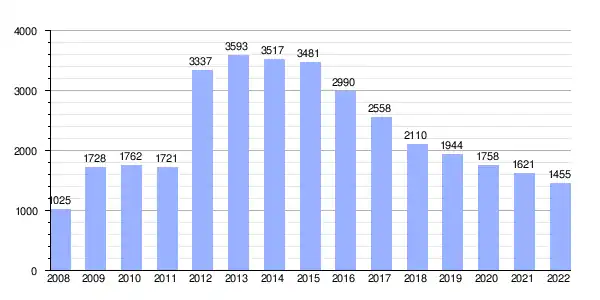 | Gráfica de evolución de la deuda viva del Ayuntamiento de Villaverde del Río entre 2008 y 2022 |