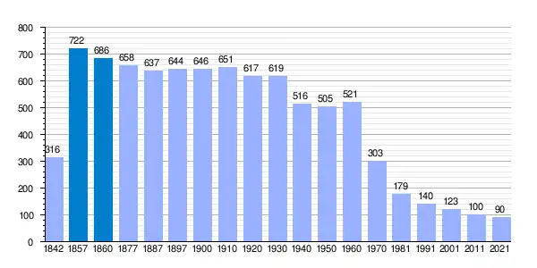 | Gráfica de evolución demográfica de Villegas[3] entre 1842 y 2021 |