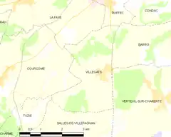 Villegats es una población y comuna francesa, en la región de Poitou-Charentes, departamento de Charente, en el distrito de Angoulême y cantón de Ruffec.