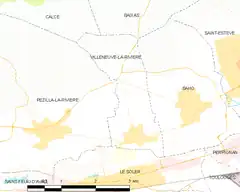 - Localización de Villeneuve-la-Rivière en un mapa de Francia y comunas limítrofes (enlace roto disponible en Internet Archive; véase el historial, la primera versión y la última).