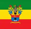 El Concejo Municipal, por Acuerdo No. 049 de 7 de julio de 1977, conformó la bandera de la ciudad de Villeta con los siguientes colores representativos: Una franja verde de cuarenta centímetros de ancho, que representa la fertilidad de su suelo y la producción agrícola. Una franja de color amarillo, de cuarenta centímetros de ancho, que representa la riqueza del Municipio y una franja de igual dimensión de color rojo, que representa el sacrificio de sus hijos, quienes desde la independencia han ofrendado su vida por la libertad. La bandera de Villeta lleva en el centro el escudo del Municipio.[7] El largo es entonces de dos metros con cincuenta centímetros (2.50m) por un ancho de 1,2 metros con el escudo del Municipio bordado en el Centro.