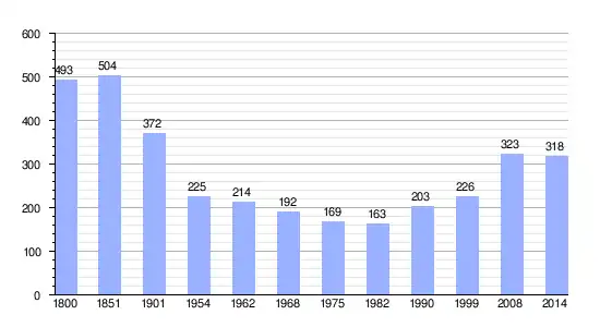 Los datos demográficos contemplados en este gráfico de la comuna de Vincent[4] se han cogido de 1800 a 1999 de la página francesa EHESS/Cassini, y los demás datos de la página del INSEE.[5]