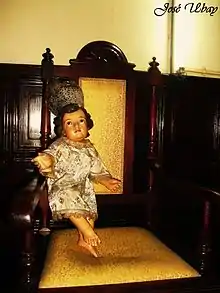- El manto rojo, de terciopelo granate, fue donado por la infanta María Luisa Fernanda de Borbón, duquesa de Montpensier.