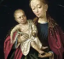 La representación del Niño probablemente deriva de Rogier van der Weyden, dada su alegría y amable expresión facial. Como Christus podría no haber tenido acceso a la obra del maestro mayor, la influencia probablemente fue de segunda mano, tal vez a través de las pinturas de Hans Memling. [3]