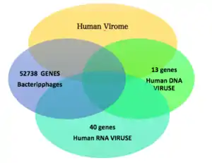 El viroma humano es la colección total de virus en y sobre el cuerpo humano.[3][4][5] Los virus en el cuerpo humano pueden infectar tanto las células humanas como otros microbios, como las bacterias (bacteriófagos).[6] Algunos virus causan enfermedades, mientras que otros pueden ser asintomáticos. Ciertos virus también se integran en el genoma humano como provirus o elementos virales endógenos.