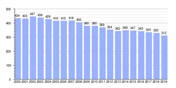 | Gráfica de evolución demográfica de Visantoña (parroquia) entre 2000 y 2019 |