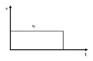 donde es una función de fluencia, es la tensión de Cauchy, es un conjunto de variables internas (como la deformación plástica ), es un tiempo de relajación. La notación denota los paréntesis de Macaulay. La regla de flujo utilizada en varias versiones del modelo Chaboche es un caso especial de la regla de flujo de Perzyna[22] y tiene la forma
