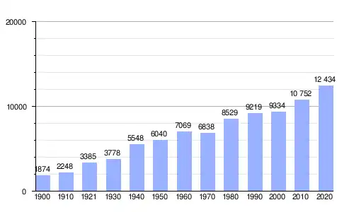 Población de los censos del Instituto Nacional de Estadística y Geografía (INEGI) de 1910 a 2020.[9] |