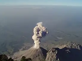 Las columnas de ceniza se elevaron 4 km y cubriendo totalmente el complejo de domos, permaneciendo nublado por casi 8 h, la columna expulsada se movió 15 km en dirección norte, luego se movió 50 km al sur llegando cerca de la costa. Como producto de la erupción, causó alarma en Quetzaltenango donde la ceniza alcanzó 2 a 3 mm de espesor en algunas partes: la ceniza en suspensión causó inconvenientes cerrándose escuelas por dos días de la zona.