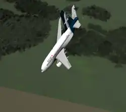 ![]() Recreación computarizada del momento de la caída del avión. | ||