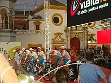 Había dieciséis equipos confirmados desde 2008, estos eran los equipos de categoría UCI ProTour 2008 que permanecían en activo.[3] Posteriormente se dieron las invitaciones que fueron para los de categoría UCI ProTour del Team Katusha, Sky Professional Cycling Team y Garmin-Transitions y los de categoría Profesional Continental del Xacobeo Galicia, Andalucía CajaSur y Cervélo Test Team; por lo tanto el único equipo ProTour del 2010 que se quedó fuera fue el Team RadioShack.[4] Formando así un pelotón de 198 ciclistas (cerca del límite de 200 establecido para carreras profesionales), con 9 corredores cada equipo, de los que acabaron 156;[5] con 154 clasificados tras la desclasificaciones de David García Dapena y Ezequiel Mosquera por dopaje (ver sección Positivos en la Vuelta).[2] Los equipos participantes fueron:[6]