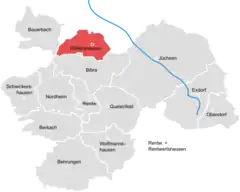 Se encuentra ubicado al oeste de la ciudad de Suhl, y a poca distancia al noreste de la frontera con el estado de Baviera.