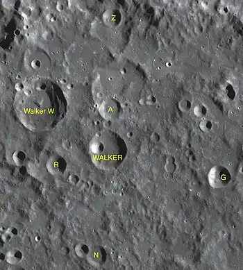 Walker es un cráter de impacto perteneciente a la cara oculta de la Luna. Se encuentra al noroeste de la enorme planicie amurallada del cráter Apolo. Equidista de los cráteres Plummer al este y Rumford al oeste-suroeste.