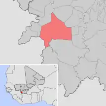 Se encuentra ubicada al suroeste del país, al sur de la capital nacional, Bamako, y cerca de la frontera con Costa de Marfil y República de Guinea.
