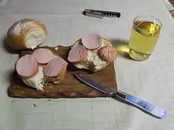 La comida se emplea directamente de la mano, el cuchillo se emplea sólo para quitar la piel de la salchicha, y un sacacorchos que sirve para quitar los corchos de las botellas. Se sirve en las recolecciones de las vides y en las meriendas, existe como un plato nacional del palatinado.