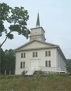 ![]() La primera iglesia Bautista construida en Wellsburg en el siglo XVIII | ||
