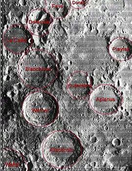 Por convención estos elementos son identificados en los mapas lunares poniendo la letra en el lado del punto medio del cráter que está más cerca de Werner.[6]