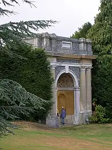 La arquitectura clásica continúa a lo largo del camino alrededor del lago, con el "Templo de Flora", una casa de verano escondida, y el "Templo de Daphne", ambos con reminiscencias de un pequeño templo en la Acrópolis. Otro templo escondido, el "Templo Redondo", tiene una logia curva. Más cerca de la casa, ocultando el ala de servicio, se encuentra un arco de triunfo romano, el "Templo de Apolo ", también conocido (debido a su antiguo uso como lugar para las peleas de gallos) como "Arco de la carlinga", que contiene una copia del el famoso Apolo de Belvedere. Muy cerca se encuentra el "Templo de Diana", con un pequeño nicho que contiene una estatua de la diosa. Otra diosa se celebra en el "Templo de Venus". Debajo hay una Exedra, una gruta (conocida como el Salón de Venus) y una estatua de Mercurio. Esta vez tuvo una copia de la Venus de Medici; fue demolido en la década de 1820 pero reconstruido en la década de 1980 y ahora tiene una réplica de la Venus de Milo.[Da. 11]
