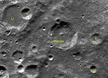 Por convención estos elementos son identificados en los mapas lunares poniendo la letra en el lado del punto medio del cráter que está más cerca de Wexler.