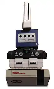 Nintendo Wii (ニンテンドーウィー Nintendō Uī?) es la sexta videoconsola descontinuada producida por Nintendo y estrenada el 19 de noviembre de 2006 en Norteamérica y el 8 de diciembre del mismo año en Europa. Perteneciente a la séptima generación de videoconsolas,[9] es la sucesora directa de GameCube y compitió con la Xbox 360 de Microsoft y la PlayStation 3 de Sony. Nintendo afirmó que Wii está destinada a una audiencia más amplia a diferencia de las otras dos consolas.[10] Desde su debut, la consola superó a sus competidoras en cuanto a ventas,[11] y, en diciembre de 2009, rompió el récord como la consola más vendida en un solo mes en Estados Unidos.[12]
