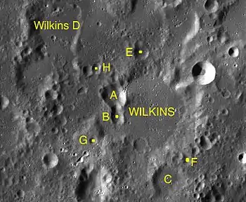 Por convención estos elementos son identificados en los mapas lunares poniendo la letra en el lado del punto medio del cráter que está más cercano a Wilkins.[3]