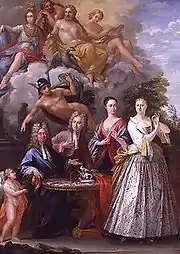 William Talman, su hijo John Talman, su hija Frances Cokayne y su esposa, Hannah Talman, retratados por Giuseppe Grisoni (de izquierda a derecha, NPG)