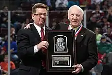 Marshall (derecha) cuando fue introducido al Salón de la Fama de los Hershey Bears en 2012.