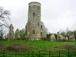 En los terrenos de la casa hay una cadena de lagos, una iglesia, una Torre Gótica (de adorno); una granja, y un jardín vallado del siglo XVIII.