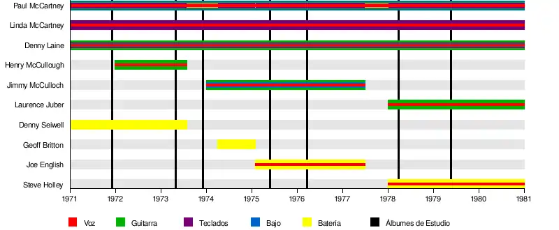 Paul McCartney Linda McCartney Denny Seiwell Denny Laine Henry McCullough Jimmy McCulloch Geoff Britton Joe English Steve Holley Laurence Juber | ||
