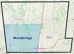 El área comúnmente considerada Woodbridge hoy cubre una porción muy grande (aproximadamente un tercio) de Vaughan, y generalmente se considera que está delimitada por la autopista 50 o la autopista 27 al oeste, Steeles Avenue al sur, la autopista 400 al este y Major Mackenzie Drive hacia el norte.[12]