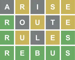 Wordle es un videojuego de palabras de navegador desarrollado por Josh Wardle, un programador que previamente había creado los experimentos sociales Place y The Button para Reddit.[1][2][3][4]