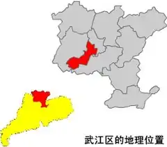 Wujiang léase Uú-Chiáng (en chino simplificado, 武江区; pinyin, Wǔjiāng qū) es un distrito urbano bajo la administración directa de la ciudad-prefectura de Shaoguan. Se ubica al este de la provincia de Cantón, en el sur de la República Popular China. Su área es de 677 km² y su población total para 2018 fue más de 300 mil habitantes.