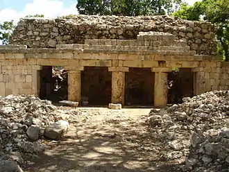 Sobre una colina cercana a las edificaciones principales se desplanta una estructura de tres habitaciones abovedadas conocida como el Edificio sobre la colina del noroeste. Todas las estructuras del sitio representan un buen ejemplo de la llamada arquitectura Puuc.