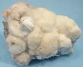Suele encontrarse asociado a otros minerales como: tobermorita, clinoedrita, wollastonita, diópsido, taumasita, laumontita, estibina o apofilita.