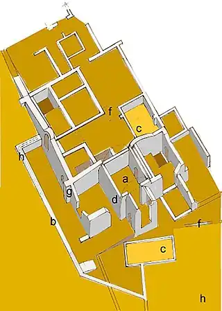 ![]() Axonometría del yacimiento a. Termas | ||