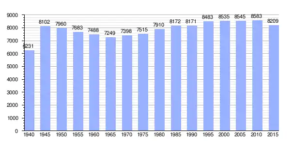 | Gráfica de evolución demográfica de Yahiko entre 1940 y 2015 |
