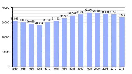 | Gráfica de evolución demográfica de Yaita entre 1950 y 2015 |