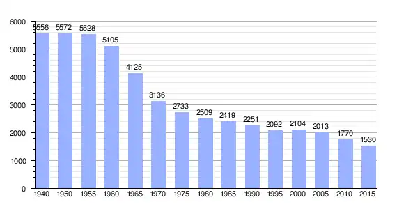 | Gráfica de evolución demográfica de Yamato entre 1940 y 2015 |