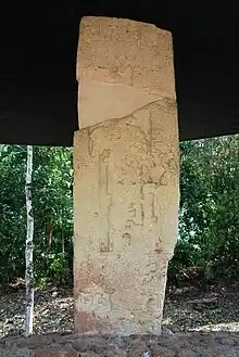 Estela 33 es un monumento fragmentado que fue descubierto durante las excavaciones de la plataforma sobre la que se apoyó la Estela 3.