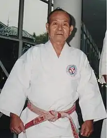 Su primer maestro de karate fue Ambun Tokuda y luego de la muerte de este durante la Segunda Guerra Mundial, continuó entrenando con el maestro Chosin Chibana[3]